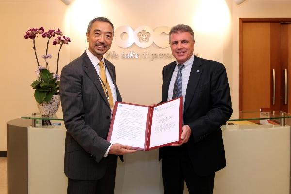 (L-R) Mr. Stephen Ng, Director of Trades of OOCL received the verification certificates from John Rowley, Managing Director, Management Systems & Inspection Services of Lloyd's Register Group